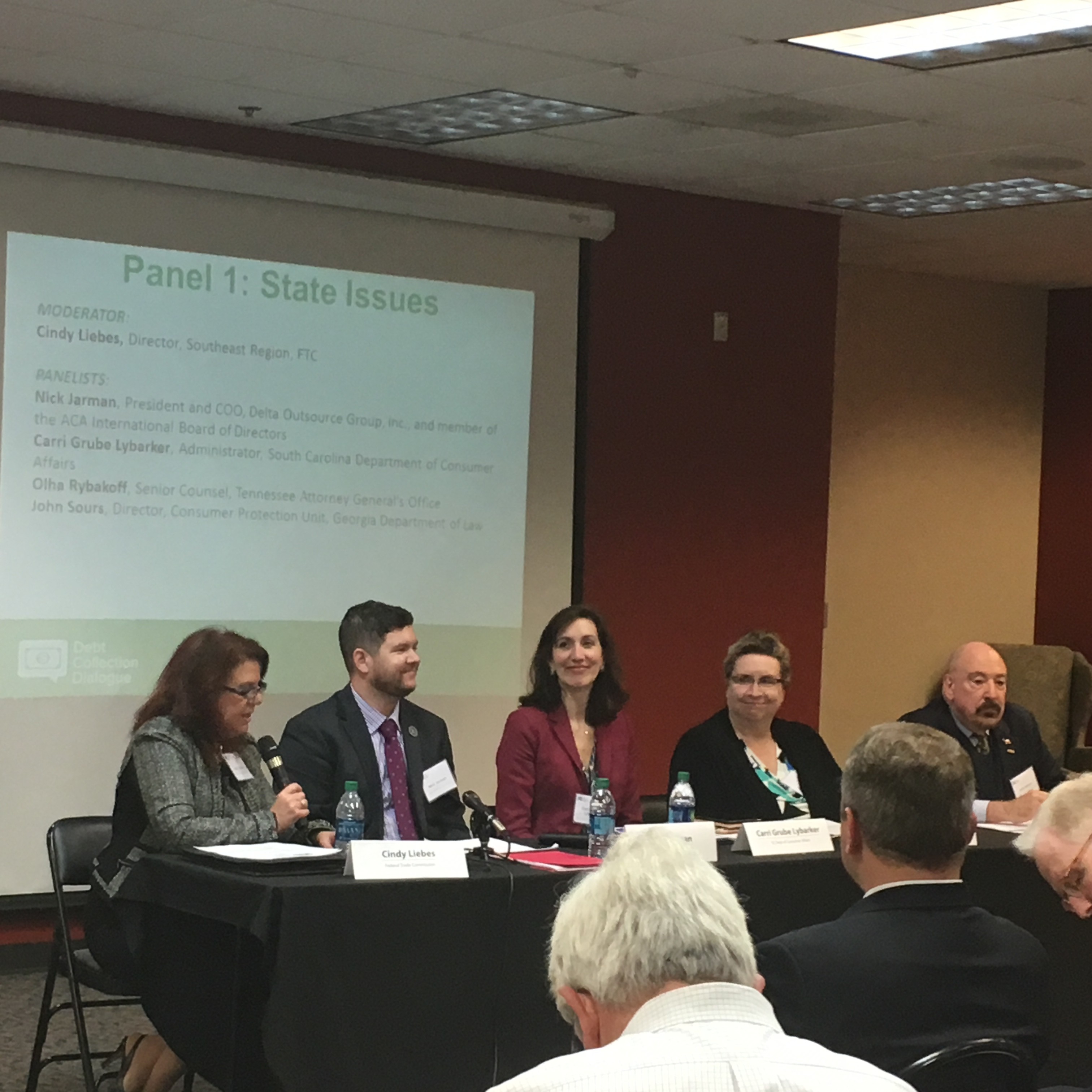 Panelists debated the merits of potentially increasing regulation around debt collectors in their states, which did not garner much enthusiasm. “We have very specific requirements for health spas, but no regulation statute for debt collectors,” explained John Sours, Director of the Consumer Protection Unit. There was general consensus from state representatives that more enforcement actions were needed to actualize the laws we have in place now. Nick Jarman, COO of debt collection firm Delta Outsource Group and ACA International representative asked the panel if a registry or some form of identification of good actors might help consumers in avoiding the bad actors in the marketplace. State representatives agreed that being able to identify them would be immensely helpful. In South Carolina, the Department of Consumer Affairs has a public complaints database that at least allows consumers to search businesses to see if they have formal complaints lodged against them. However, this is not an exhaustive list of bad actors, as we know many consumers do not lodge formal complaints against scammers or collectors engaging in unlawful activity.