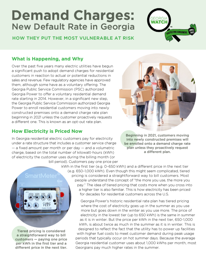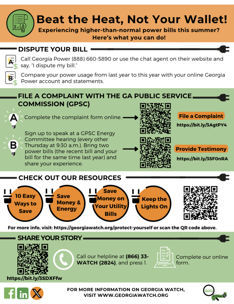 | Utility Bills | Georgia Watch presents to community groups on different ways to save money on utility bills. The presentation content can be found here. | Presentation: Save Money on Your Utility Bills |
