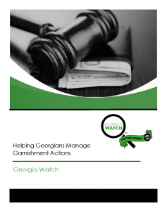 Recognizing the vital need to reform the state’s garnishment laws, Georgia Watch produced “Helping Georgians Manage Garnishment Actions,” a policy paper examining garnishment practices in Georgia and recommending state-level policy changes. This paper provides real-life examples, statistics, research, and expert knowledge of garnishment practices in Georgia and how those practices impact the lives of its citizens.