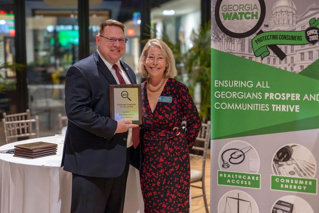 ATLANTA – On Oct. 12, Georgia Watch presented its 2023 Consumer Champion awards to six advocates and legislators for their work to protect and empower consumers in Georgia, including Rep. Josh Bonner (R-Fayetteville), Defense and Veterans Affairs Committee chairman, who received the “Consumer Champion Award for Fair Lending” for his work to protect Georgians from predatory car title lending.